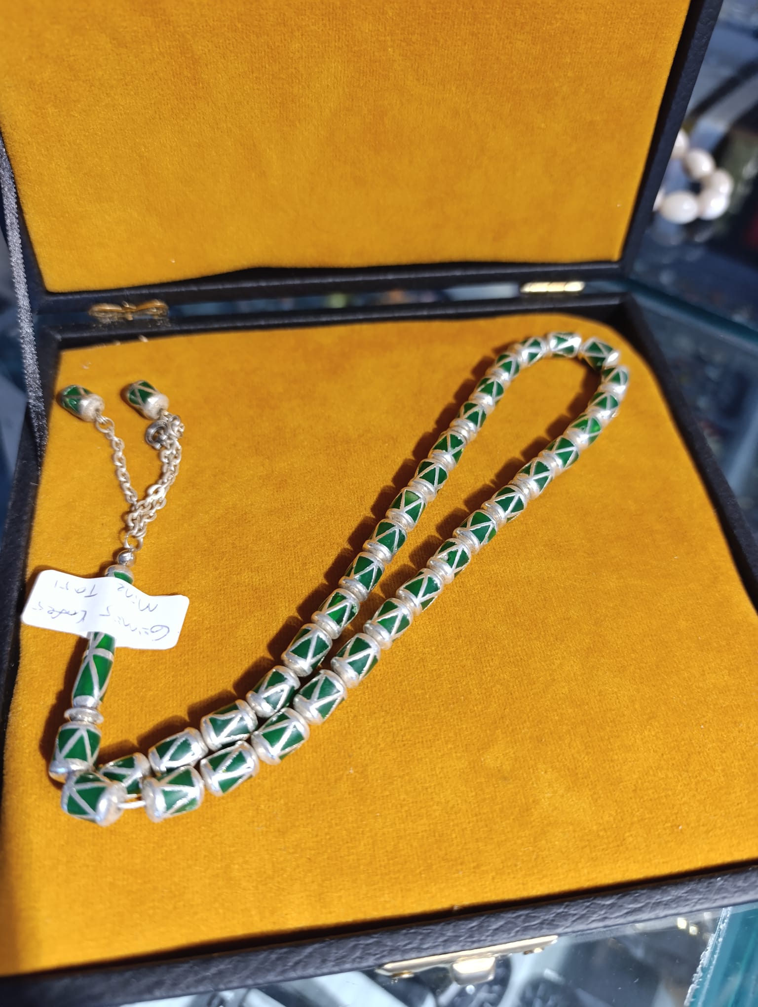 Gümüş Kafes Yeşil Mine Taşı Tesbih